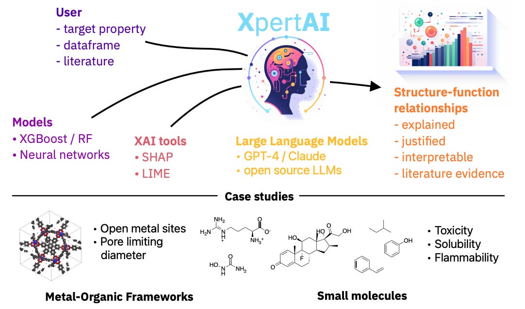Explainable artificial intelligence (XAI) tries to address the ‘black box’ nature of machine learning models. XAI can be used in chemistry to understand structure-property relationships. This study develops a framework that integrates XAI methods with LLMs to generate accessible natural language explanations of raw chemical data, which could be a useful tool for less technical users.