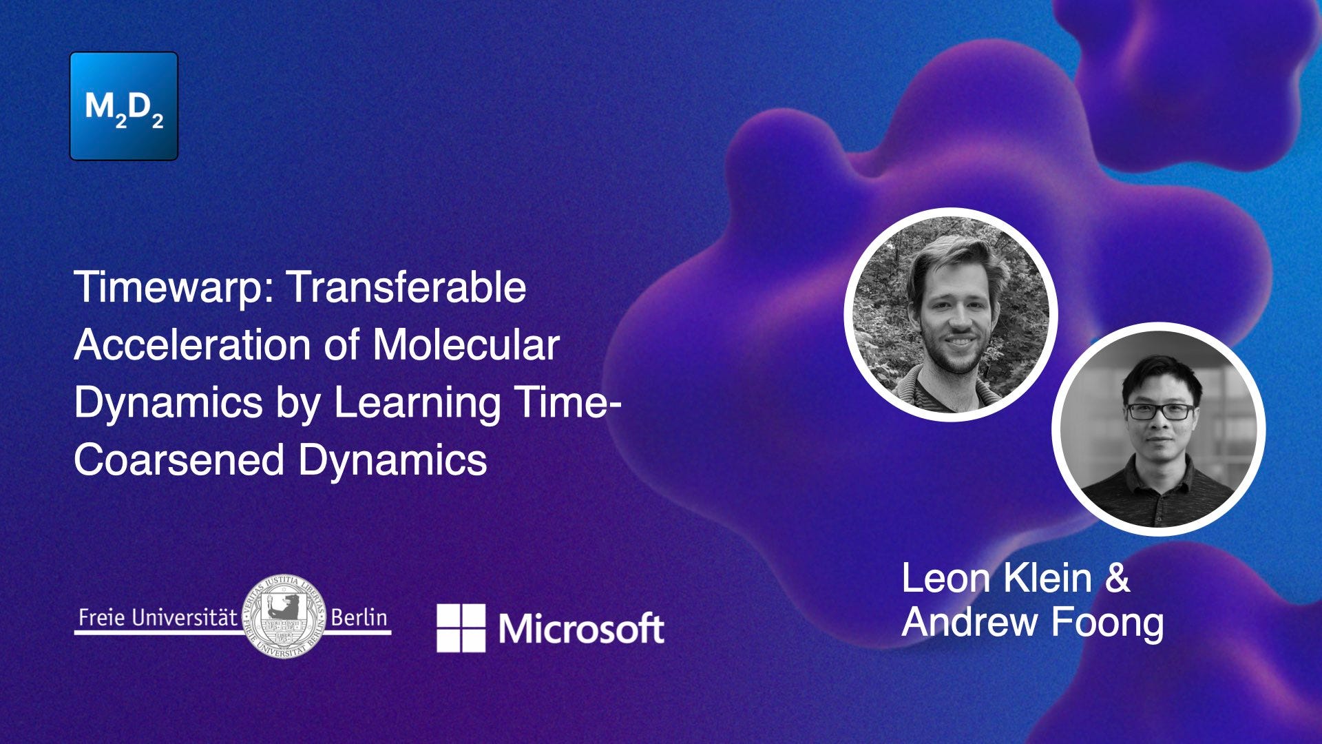 M2D2 continues next week with a presentation by Leon Klein and Andrew Foong on their paper Timewarp: Transferable Acceleration of Molecular Dynamics by Learning Time-Coarsened Dynamics.