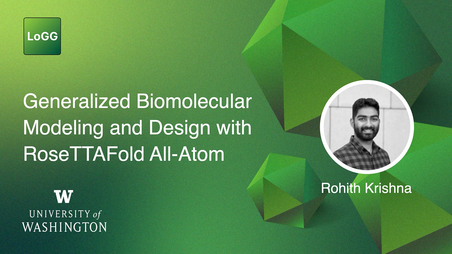 LoGG continues with a presentation by Rohith Krishna from University of Washington who will talk about RoseTTAFold All-Atom, which we featured in a previous newsletter. You won’t want to miss this one!