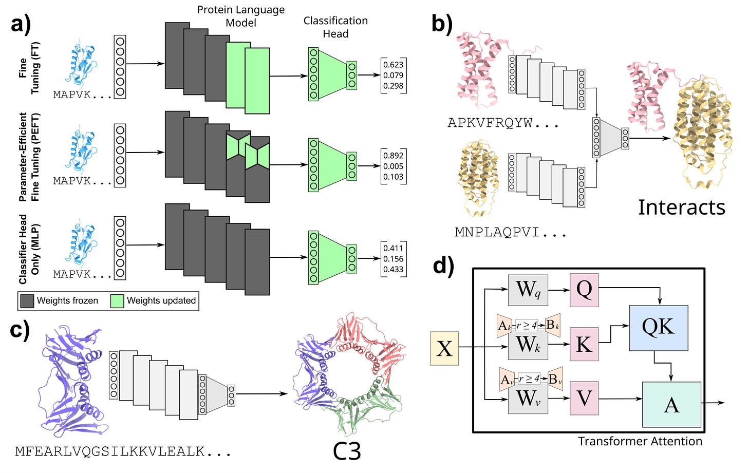 ML models, especially language models, are getting bigger. As their size increases, the computational and memory footprint of fine-tuning with these models could become a barrier for many research groups. Natural language processing has addressed these issues by parameter-efficient fine-tuning (PEFT) methods. This study applies these methods to proteomics, showing that even with using five orders of magnitude fewer parameters they can still do very well on protein-protein interactions (PPI) prediction.